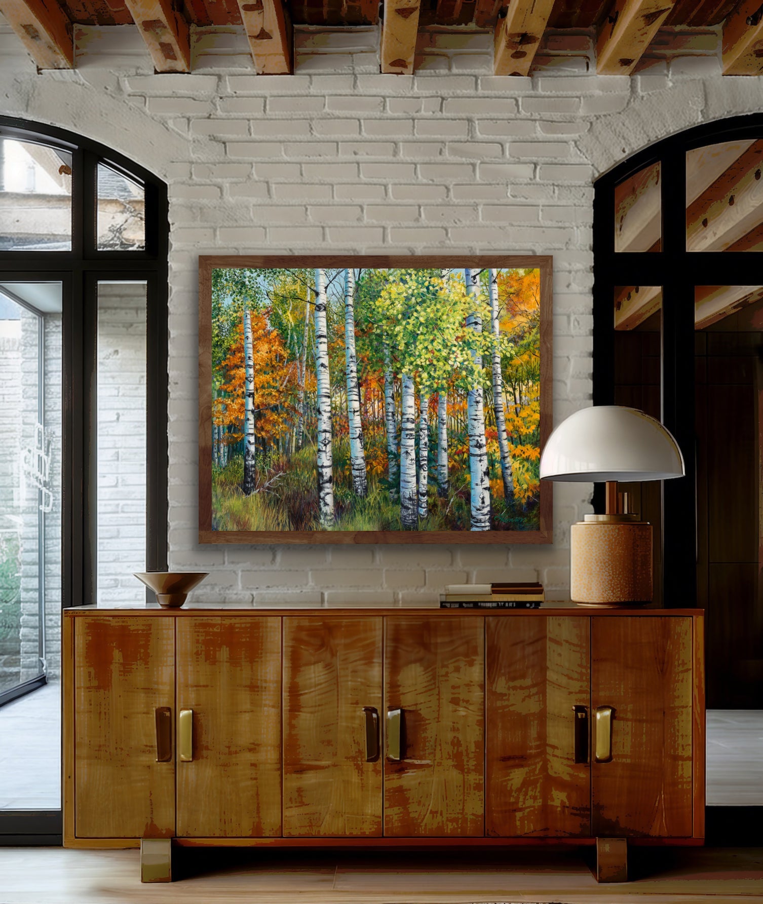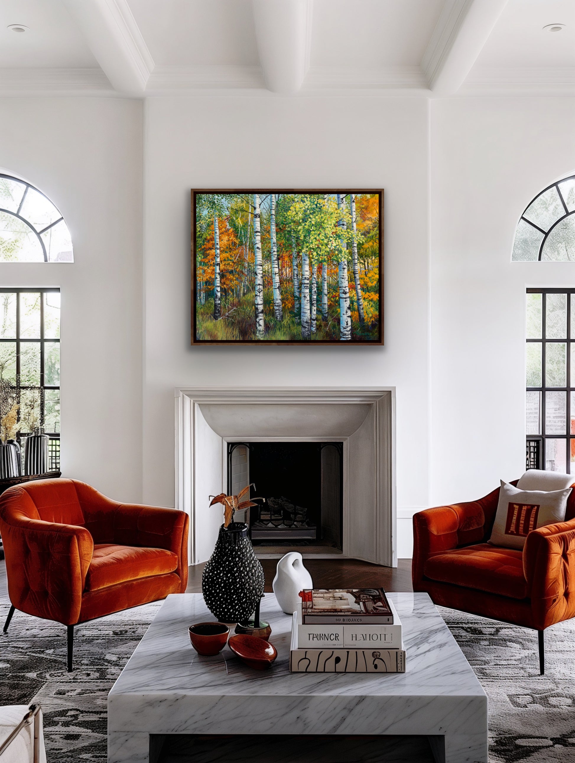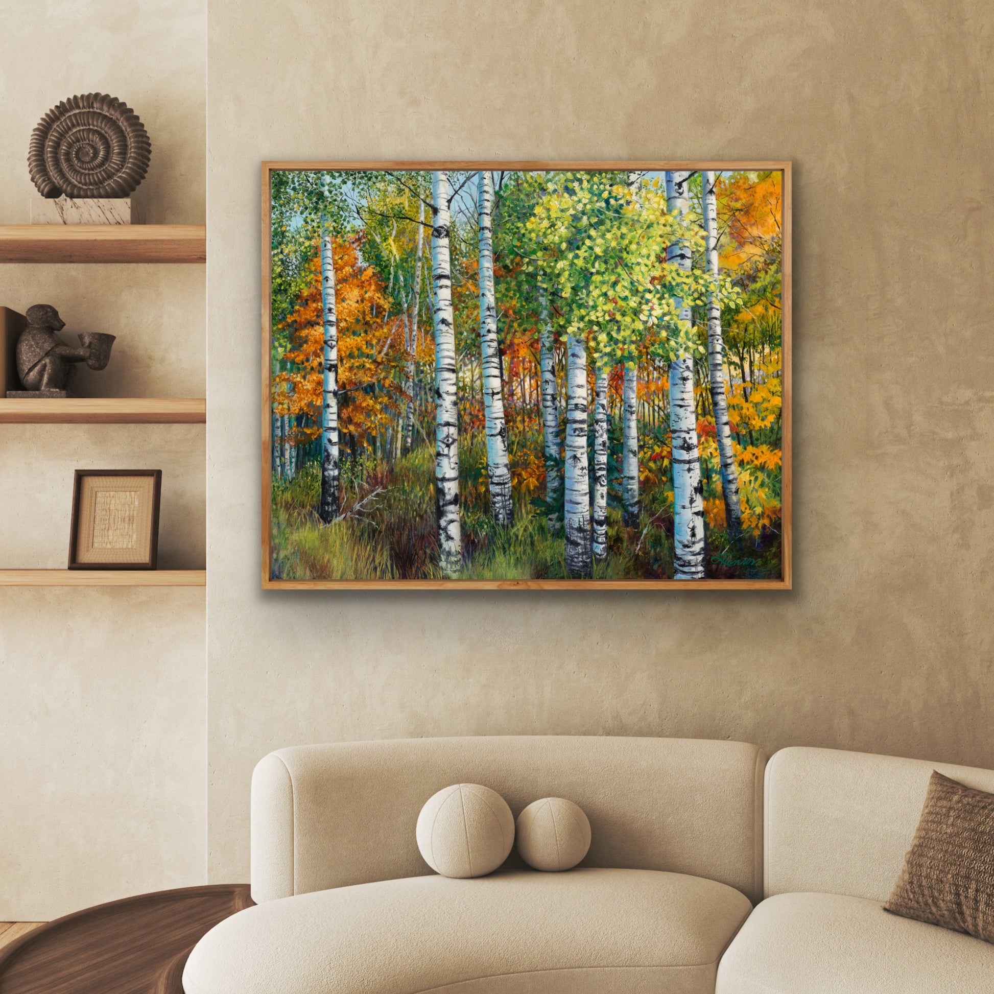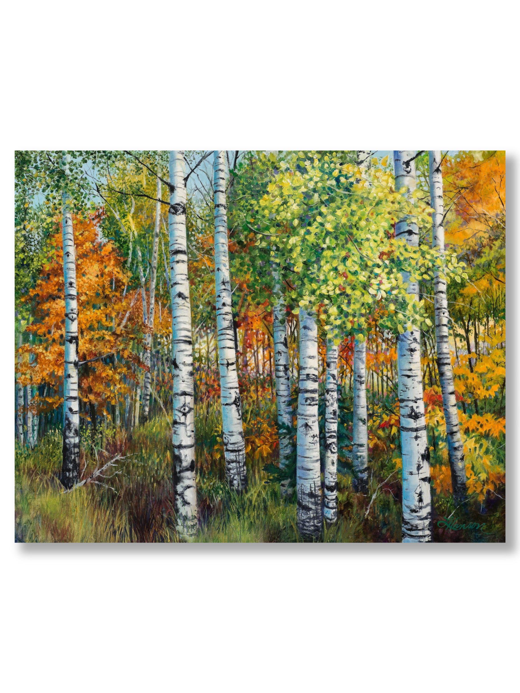 Fall is now my favorite time of the year! Crisp air bright colors are such a wonderful way to say good bye to summer to get outdoors and see the amazing show mother nature puts on! I am always looking for my next painting. I came upon this grove of aspen trees on the edge of the meadow that stood out strikingly against the brilliant colors of the maple behind them. The trunks of the trees were reflecting brightly in the morning sun light. They looked more silver than the normal greenish hue.
