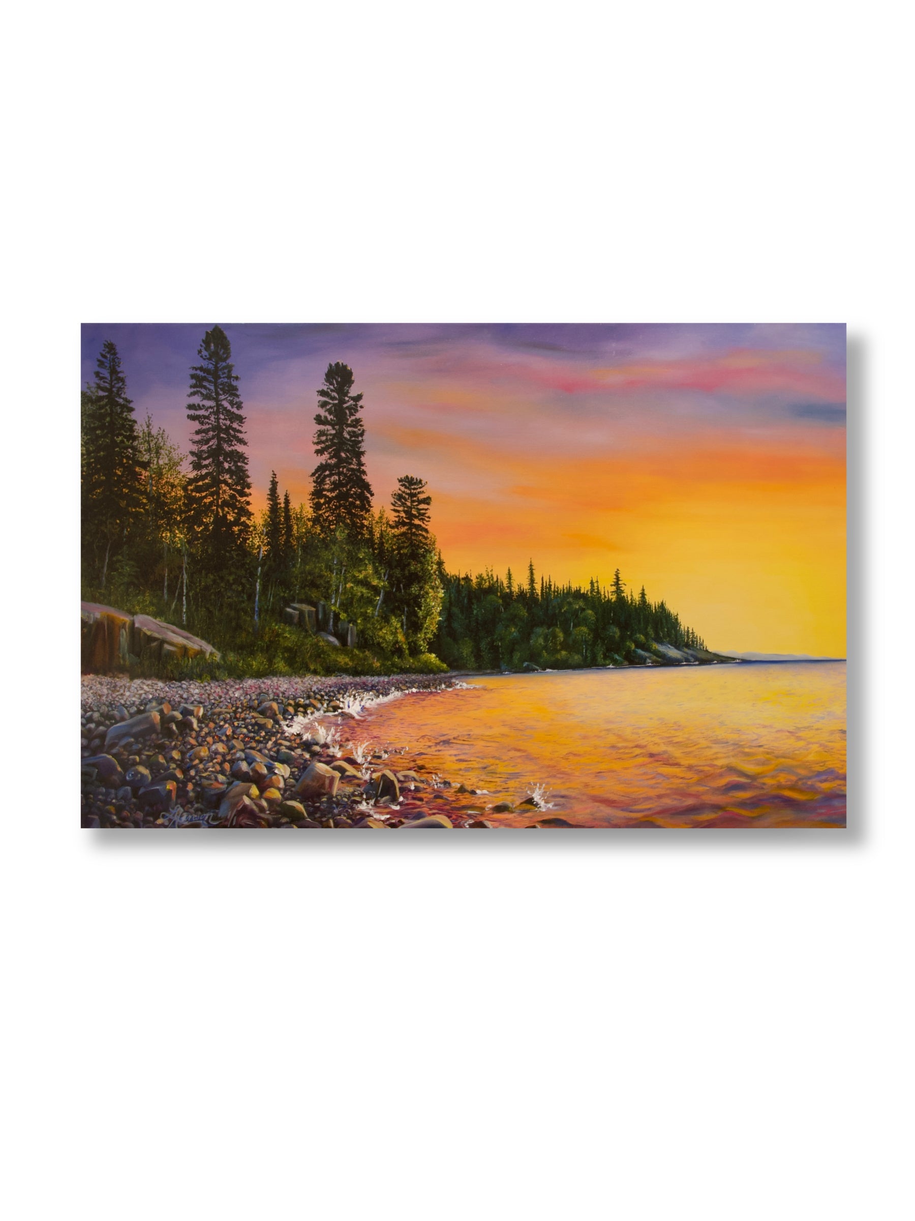 The title of the painting says it all North Shore Grand Experience! Nothing better than waking up, walking outside and experiencing a beautiful sunrise vista of Lake Superior. Well, maybe experiencing a beautiful sunset!