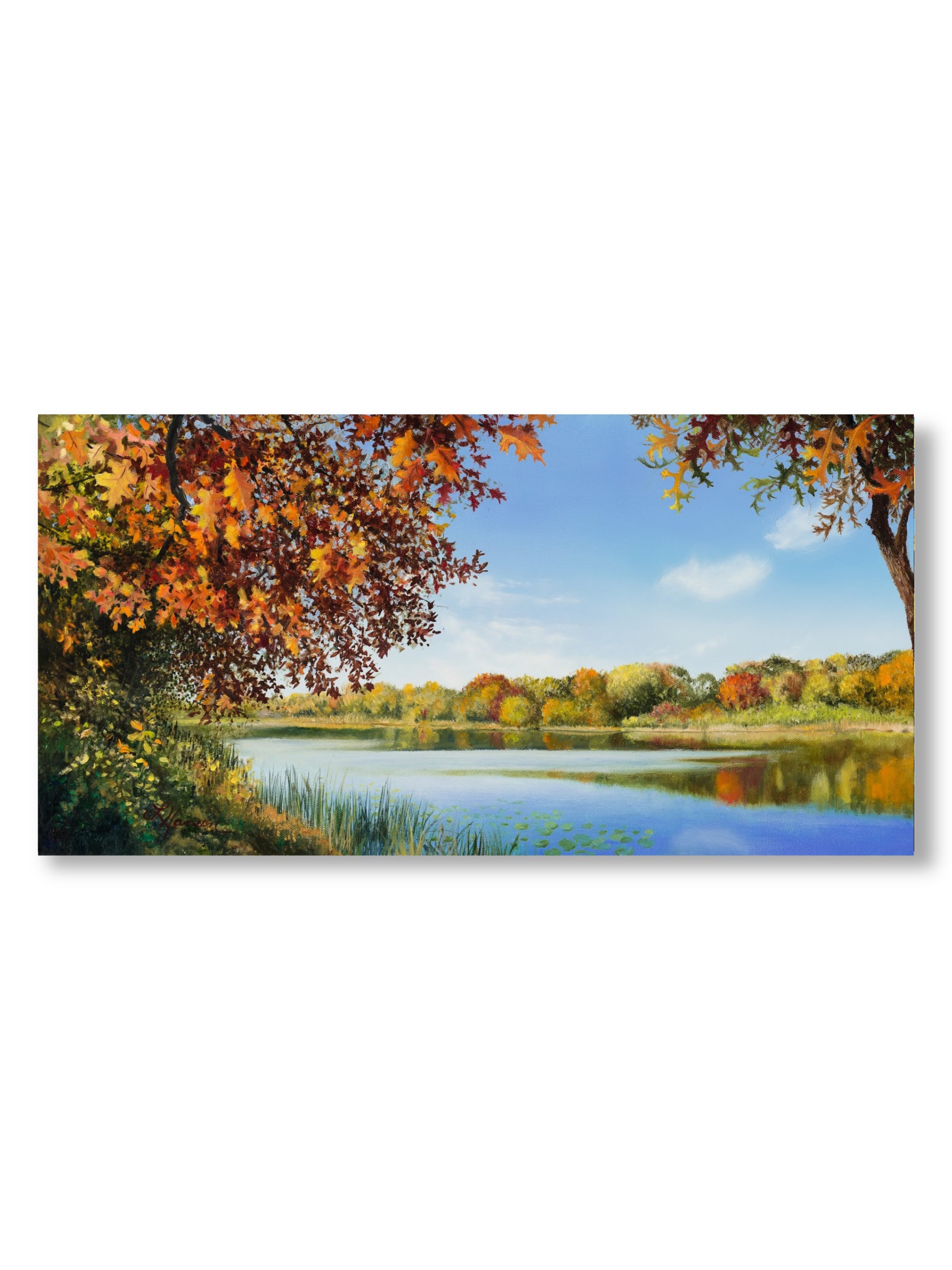 I had to capture the vibrancy of the moment with the blue sky reflecting on the water amongst the warm colors of oak trees! Fall time is my favorite time of the year. The beautiful colors are only around for a couple of weeks during the season. I think that is why it makes it so special to me. I get out as much as I can to visit the woods and experience fall in its fullest! Only a couple of days have the special color when the ski is so blue and contrasts with the warmth of the sun and the leave color.