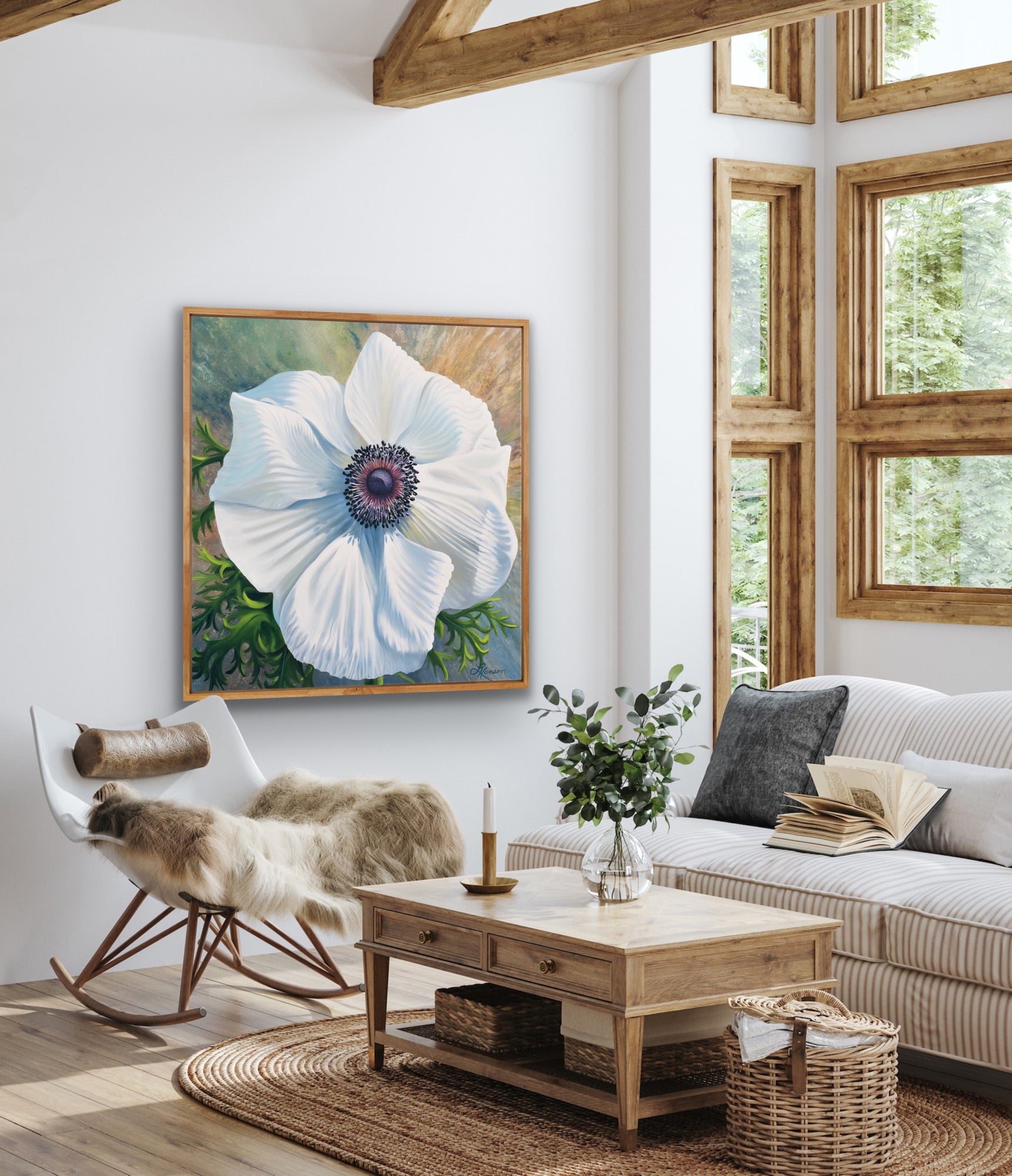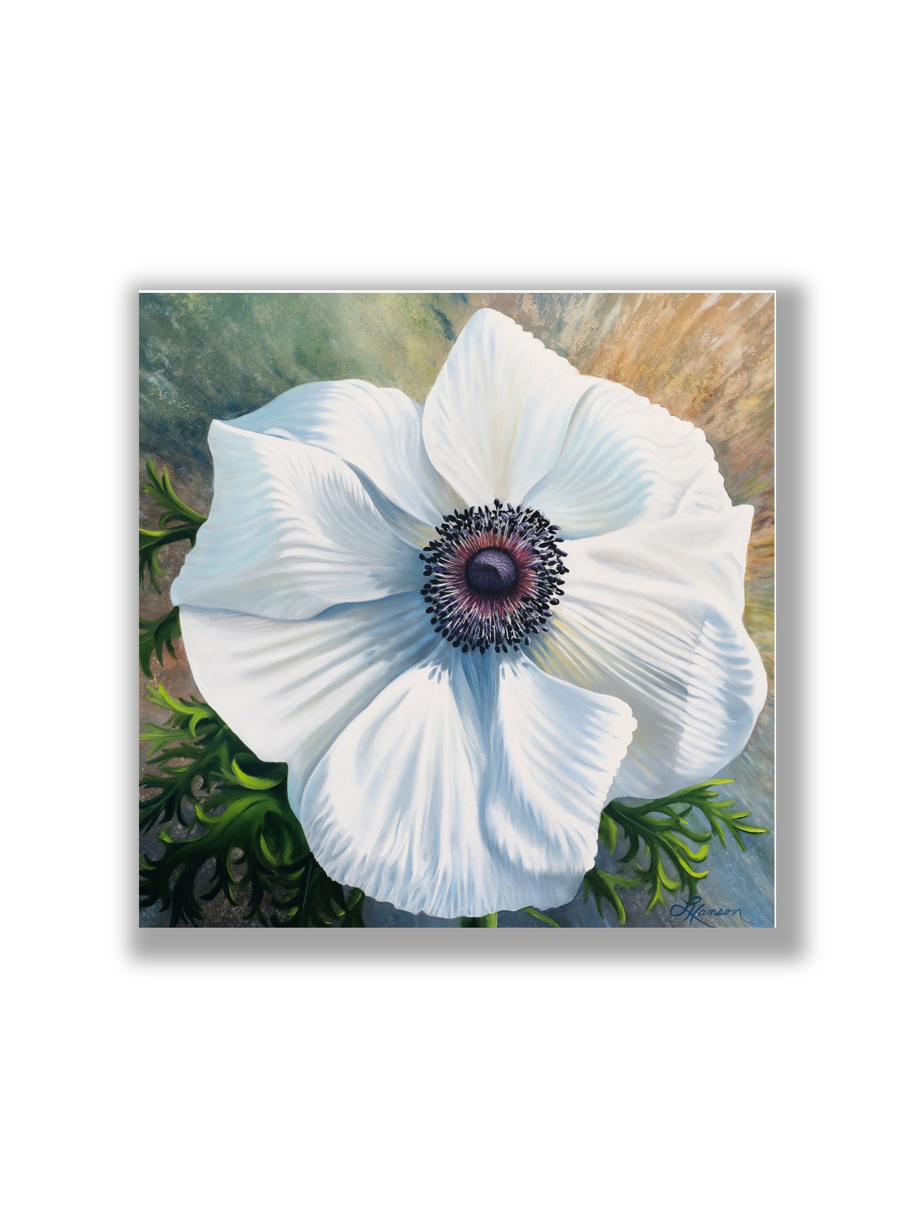 I was a cold snowy winter when I received a bouquet of flowers. I had to paint this flower to remind me of the warm summer garden. In my painting of this white poppy I have subtle reflections of the cool out door light from the north window and the warm light from the and sun from the south window! When adding depth in a painting, it is important to add shadows! But just as important is adding the light reflections!
