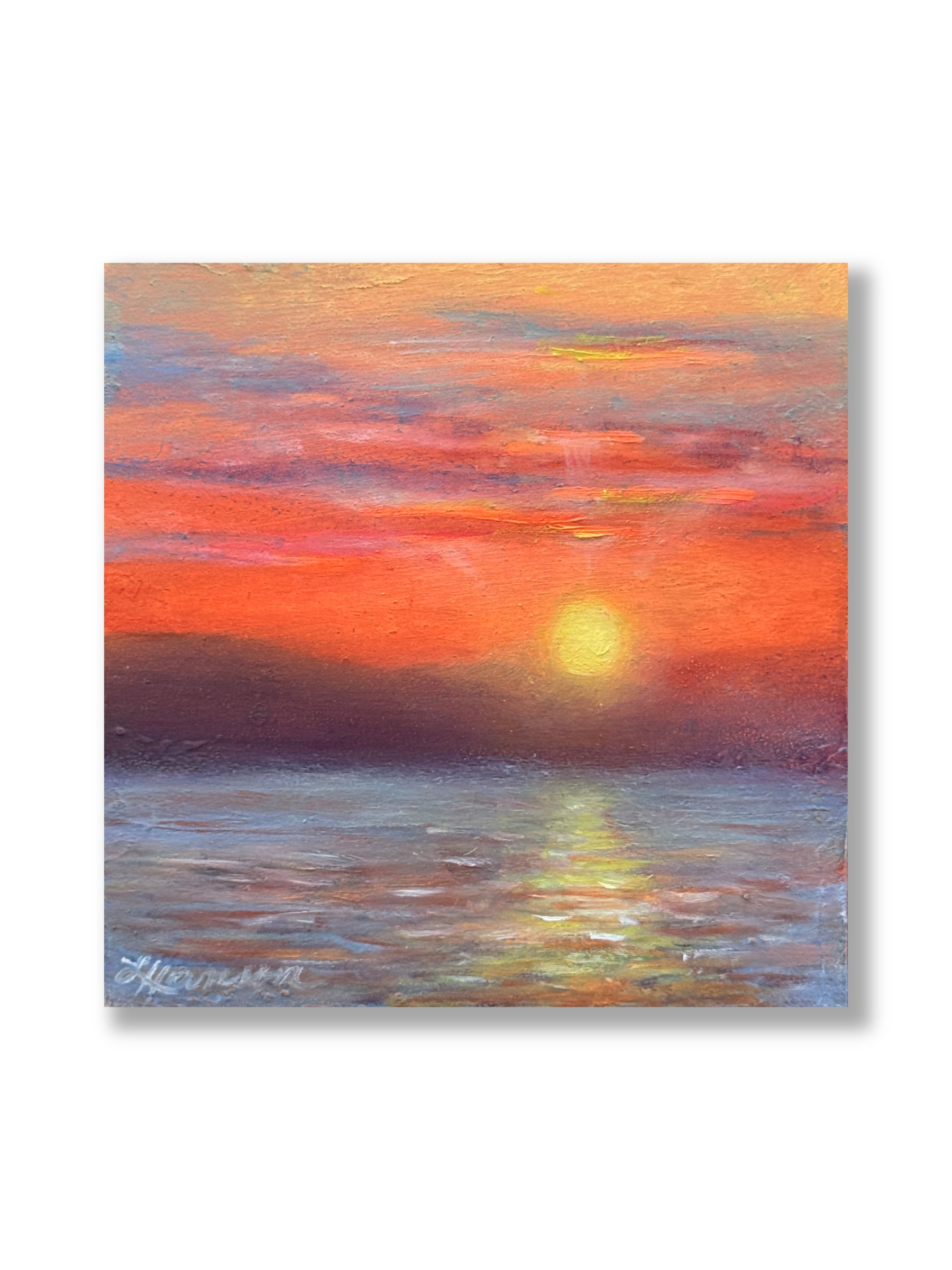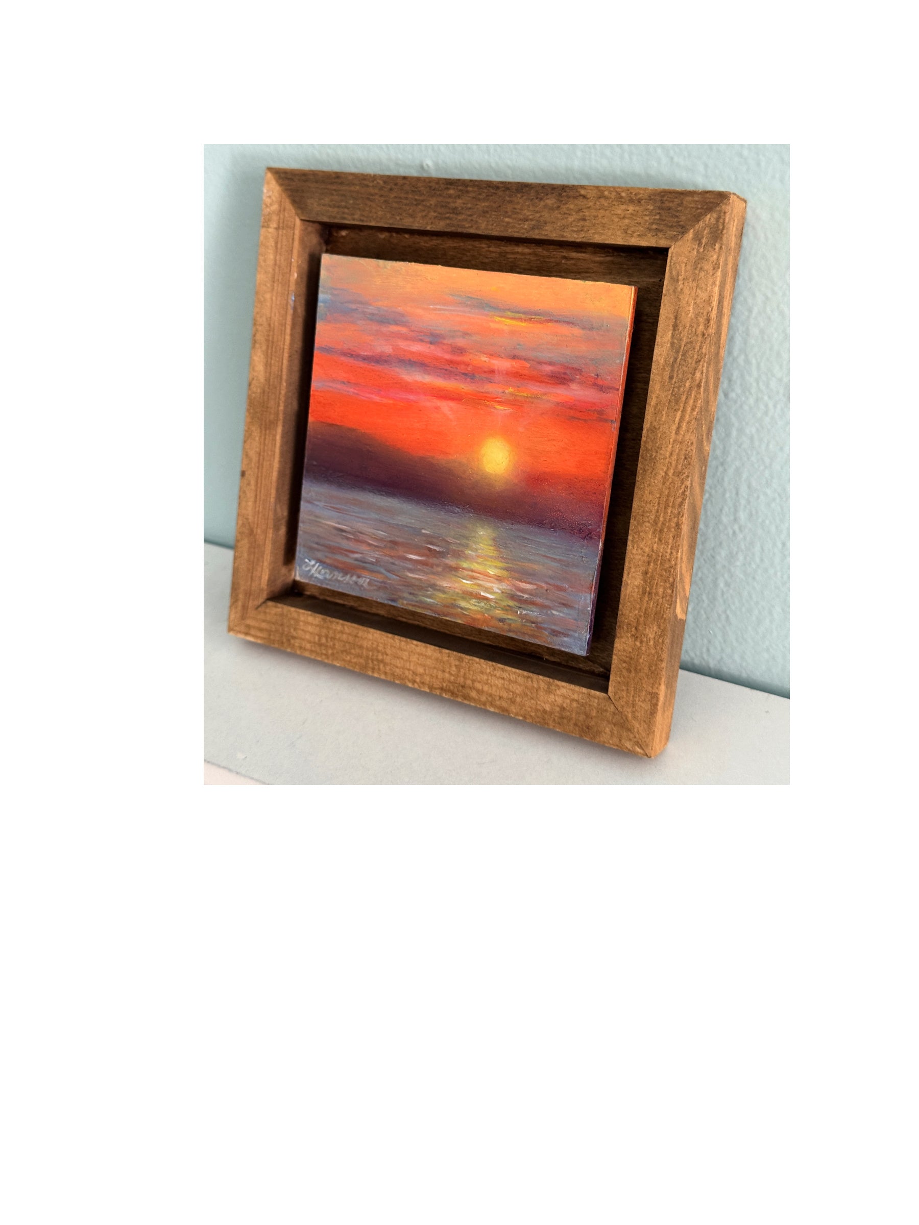 4" x 4" oil on panel with 6" x 6" honey oak stained